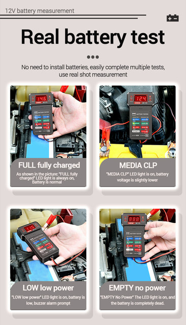 8 avis pour Testeur de Batterie 12V – Écran LED, Multifonction, Réparation Auto – Noir