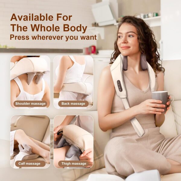 - 【Relaxation mains libres et masseur sans fil】 Libérez vos mains avec le masseur de dos et de cou. La conception de la boucle arrière du masseur de cou et de dos permet une utilisation mains libres, offrant une liberté de mouvement pendant la relaxation. Profitez d’une expérience sans fil avec la batterie rechargeable du masseur de cou shiatsu.